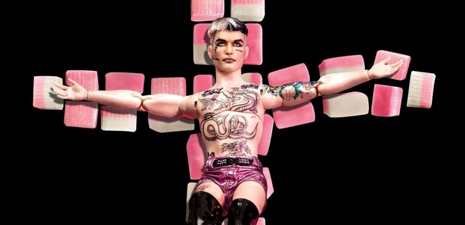 Nell’immagine il camaleontico artista appare in versione Barbie crocifisso su una croce di dolcetti. La versione pupazzetto in varie pose e compagnie scandisce sui suoi profili social i giorni mancanti all’uscita del nuovo disco a partire dallo scorso 12 luglio, nel giorno del suo trentesimo compleanno quando ha pubblicato una foto sui social con la scritta: “Da oggi consideratemi una 18enne”.